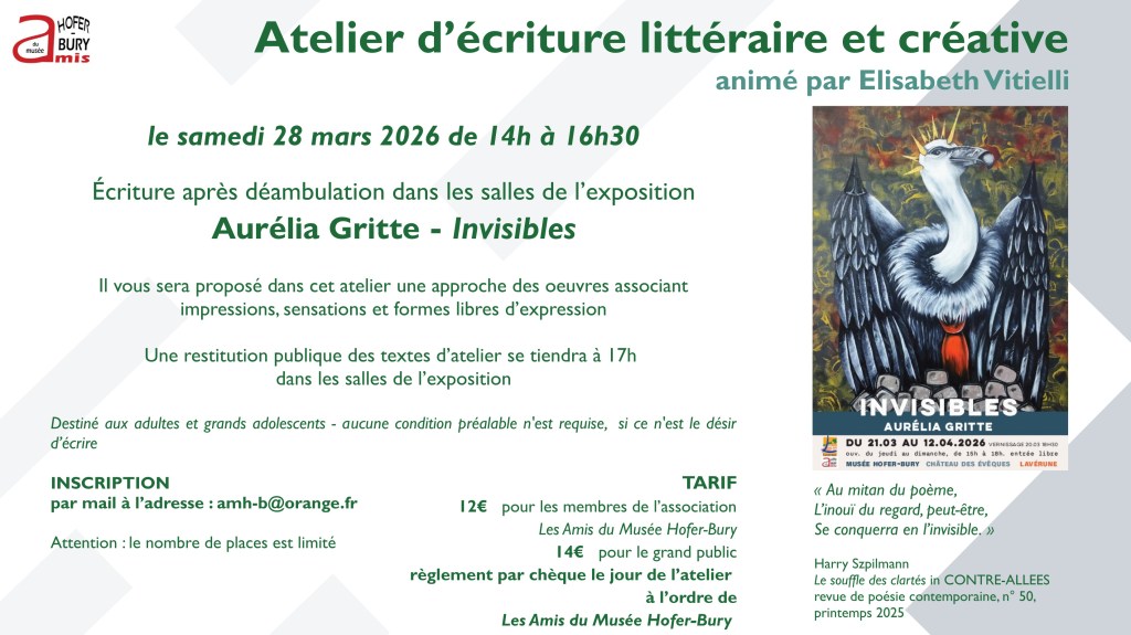 Attention : L’atelier est limité à 12 personnes retenues selon l’ordre d’inscription